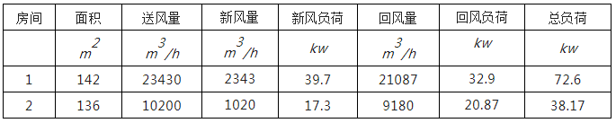 同理可計(jì)算其他潔凈室新風(fēng)負(fù)荷同回風(fēng)負(fù)荷: