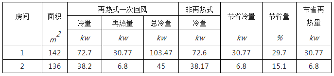 兩種空氣處理方式能量消耗對(duì)比如下表所示: